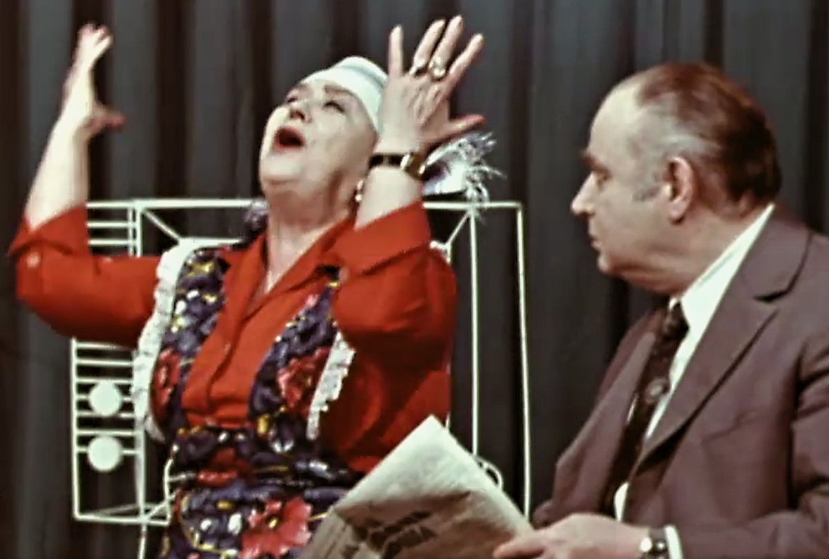Марию Миронову и Александра Менакера чаще вспоминают как родителей прославленного Андрея Миронова, но их собственный эстрадный дуэт был феноменом уникальным. В кинематографе они появлялись не так часто, как за театральными кулисами, однако каждое их появление оставляло приятное послевкусие. В 1954 году вышла музыкальная лента «Веселые звезды», где артисты, по сути, изобразили самих себя в закулисной суете московского конкурса. Позже, в начале шестидесятых, их можно было увидеть в альманахе «Короткие истории». Там они разыграли забавную сценку «Случай в самолете», примерив образы пани Кристины и ее мужа.