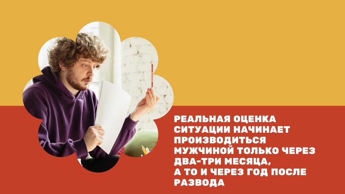 Здесь кроется самый важный момент: если в течение первого года после развода мужчина видит явное улучшение своей жизни — в бытовом, эмоциональном и интимном плане, его материальное положение не ухудшается, новая партнерша не препятствует общению с детьми и готова к рождению совместных детей, — то он переживет развод без сожалений. Если же он замечает ухудшение, то испытывает тяжелые переживания, раскаивается и пытается восстановить отношения с бывшей женой.